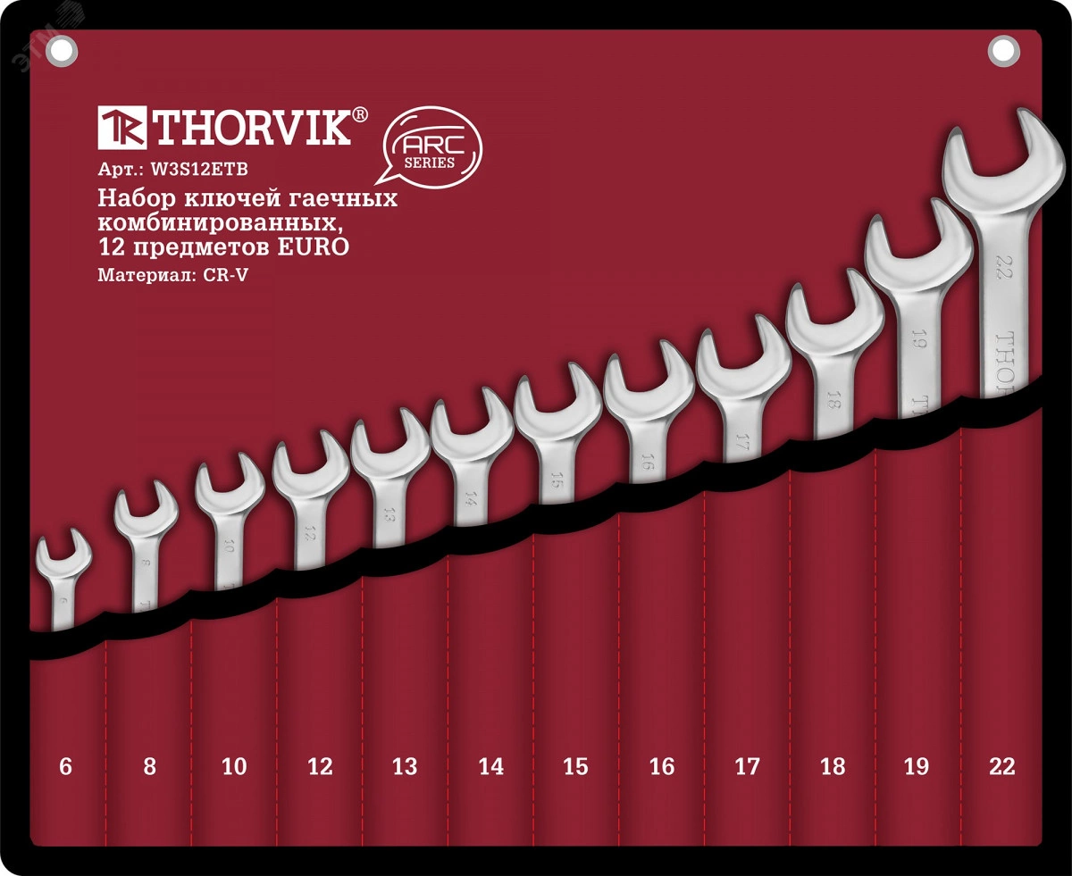 Набор ключей гаечных комбинированных серии ARC в сумке, 6-22 мм, 12 предметов EURO