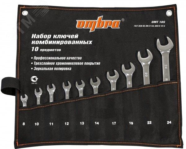 Набор ключей гаечных комбинированных в сумке, 8-24 мм, 10 предметов