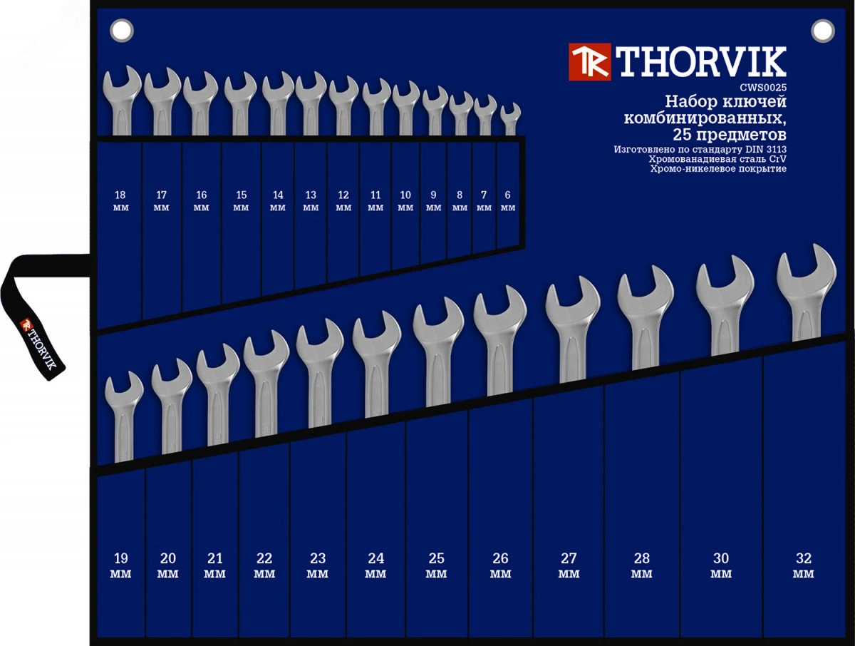 Набор ключей гаечных комбинированных в сумке, 6-32 мм, 25 предметов