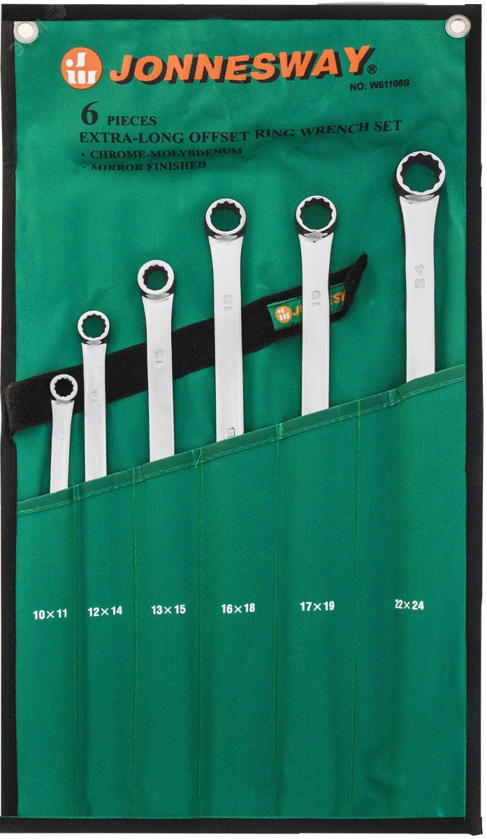 Набор ключей гаечных накидных удлиненный CrMo в сумке, 10-24 мм, 6 предметов