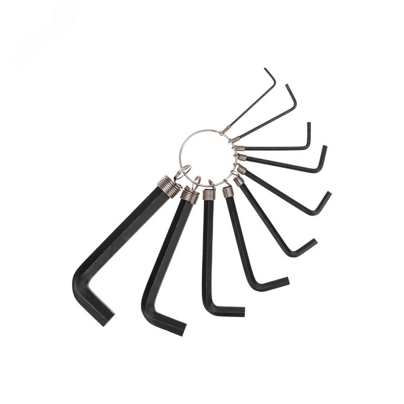 Набор ключей имбусовых HEX 1,5-10 мм, CrV, 10 шт., оксидированные, на кольце