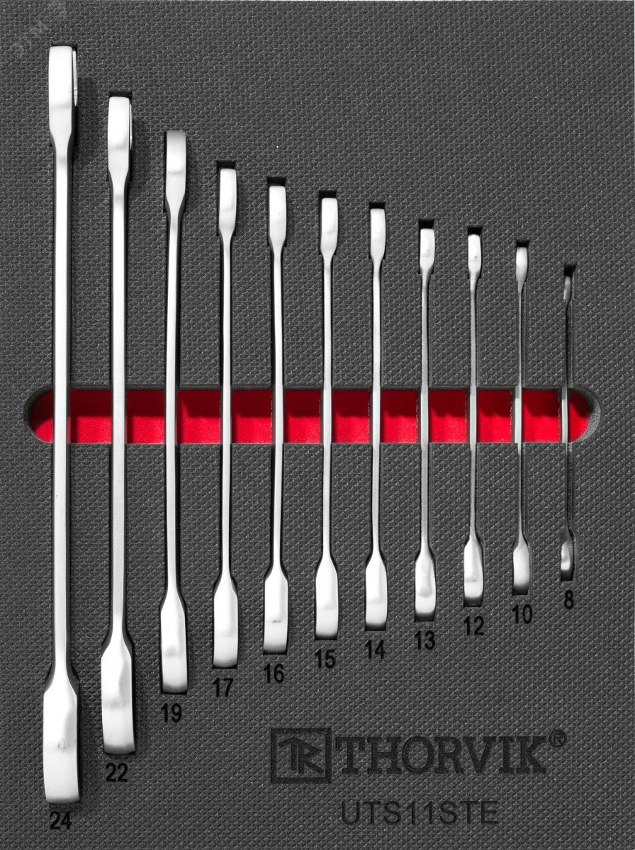Набор ключей комбинированных трещоточных в EVA ложементе 280х375 мм, 11 предметов