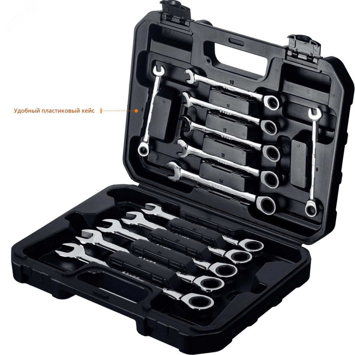 Полное описание: Набор комбинированных гаечных ключей трещоточных 12 шт, 8 - 19 мм