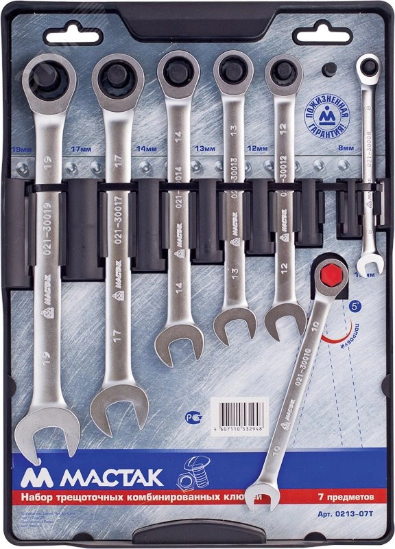 Набор комбинированных трещоточных ключей 8-19 мм 7 предметов
