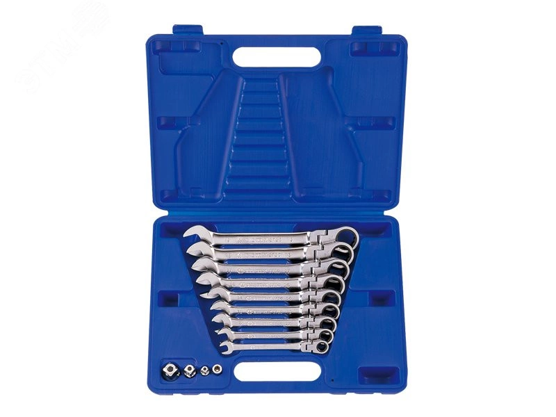 Набор комбинированных трещоточных ключей, 8-19 мм, кейс, 13 предметов