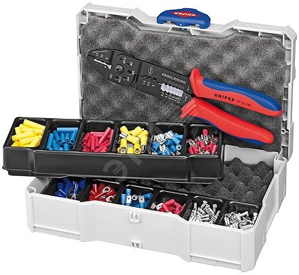 Набор контактных гильз в систейнере комплектация: пресс-клещи KN-9722240 штекеры открытые неизолированныеованные (05-10 мм 15-25 мм)гильзы флажковые (63x08 мм: 05-10 мм 15-25 мм 40-60 мм) штекеры плоские (63x08 мм: 05-10 мм 15-25 мм) наконечники