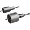 При прокладке коммуникаций в строящемся здании не обойтись без коронок по бетону. Они позволяют без труда получать отверстия среднего или большого диаметра в самых прочных материалах. Коронки имеют твердосплавные зубья из сплава ВК85, усовершенствованную систему крепления сверла на конус и резьбовое соединение с державкой М22.