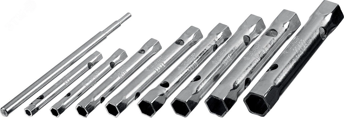 Ключи торцовые, трубчатые двухсторонние, 6-22мм, с воротком, 9шт Зубр ``МАСТЕР`` 27162-H9 подойдет для ремонта автомобилей. Инструмент хорошо справляется с заглубленным крепежом. Торцовые ключи полностью обхватывают грани болтов.