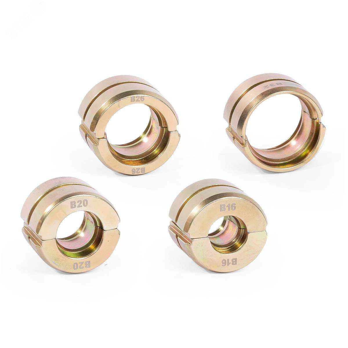 Набор сменных матриц для монтажа пресс-фитингов на трубы PEX, многослойные композитные трубы. Профиль обжима - В. Размеры монтируемых труб - 16, 20, 26, 32 мм. Матрицы совместимы с прессом для расширения труб ПГРА-СО-32.