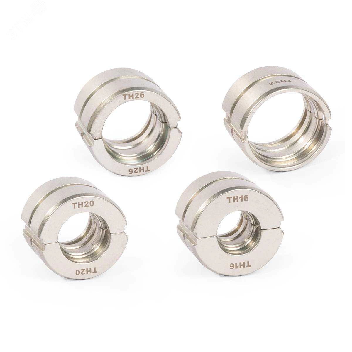 Набор сменных матриц для монтажа пресс-фитингов на трубы PEX, многослойные композитные трубы. Профиль обжима - TH. Размеры монтируемых труб - 16, 20, 26, 32 мм. Матрицы совместимы с прессом для расширения труб ПГРА-СО-32.
