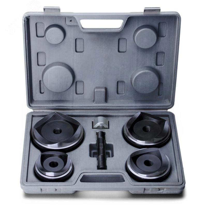 Состав набора - 4 круглые перфоформы резьбовая шпилька М20/20 опорная втулка, 4 круглые перфоформы, резьбовая шпилька М20/20, опорная втулка. Диаметр пробиваемых отверстий (мм - 76.0/89.0/101.0/115.0. Толщина пробивки листового металла - сталь St 37 до 2 мм. Нержавеющая сталь до 1.0 мм. Перфоформы представлены парой - 'матрица – пуансон'. Упаковка - прочный пластиковый кейс. Совместимость с прессами - ППО-60, ППО-115, ПГПО-60, ПГПО-60А,ПГРО-60А, ПГРОп-60А, ПГРОу-60А, ПГАПО-60А