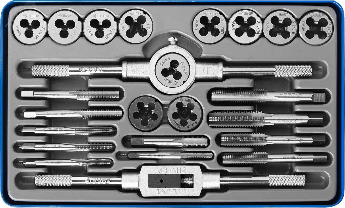 Набор метчиков и плашек, сталь Р6М5 24 предмета