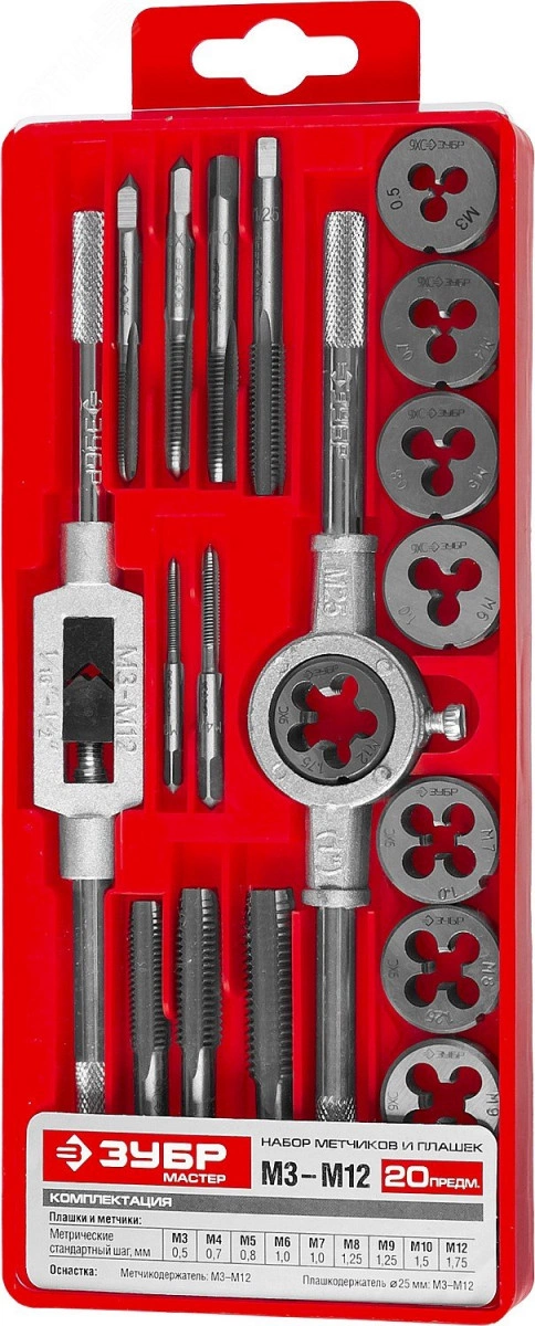 Набор метчиков и плашек в пластиковом боксе, сталь 9ХС 20 предметов