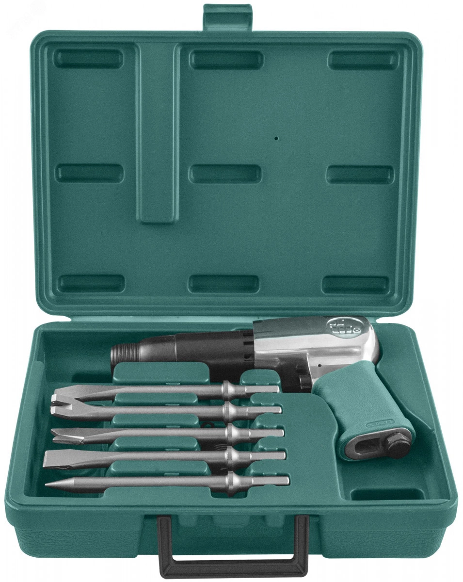 Набор, содержащий, помимо собственно пневматического молотка JAH-6833H, пять наиболее распространенных насадок для производства работ по резке, рубке, разрушению и т.п. металов и материалов различной твердости и пластичности. При проведении работ с использованием этого инструмента необходимо защищать руки, с помощью перчаток, гасящих вибрацию, применять средства защиты органов зрения, дыхания и слуха.