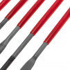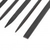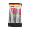 Набор комплектуется десятью надфилями – металлическими стержнями с насечками, которые предназначены для выполнения мелких слесарных работ, обработки металлов, пластмасс и других твердых материалов. Надфили диаметром 4 мм изготовлены из высокоуглеродистой стали и имеют двойную перекрестную насечку, что обеспечивает более точную и эффективную работу. В набор входят плоский тупоконечный, плоский заостренный, круглый (2 шт.), полукруглый, квадратный, треугольный, треугольный широкий, овальный, плоский пилообразный надфили. Рукоятки инструментов прорезиненные, что обеспечивает удобный и надежный захват во время работы. Общая длина надфилей составляет 160 мм, рабочая – 80 мм.