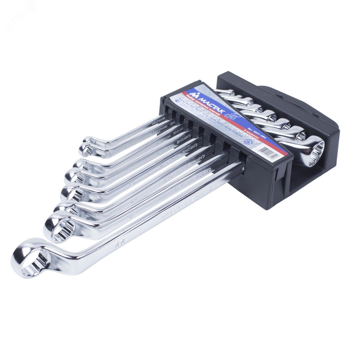 Состоит из коленчатых гаечных ключей, которые позволяют выполнять крепежные работы в различных труднодоступных местах. Изделия прослужат долгий срок благодаря качественной стали и защите от коррозии.