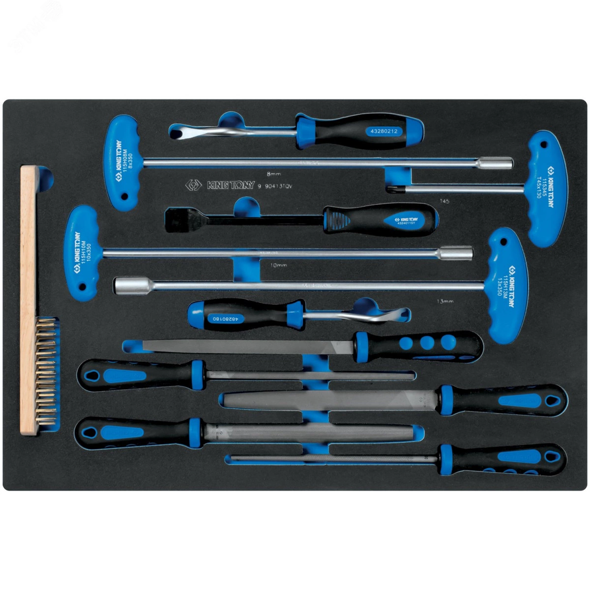 Набор торговой марки KING TONY включает в себя инструменты для разного вида работ, включая обшивку салона. Размер ложемента адаптирован для размещения на полке инструментальной тележки