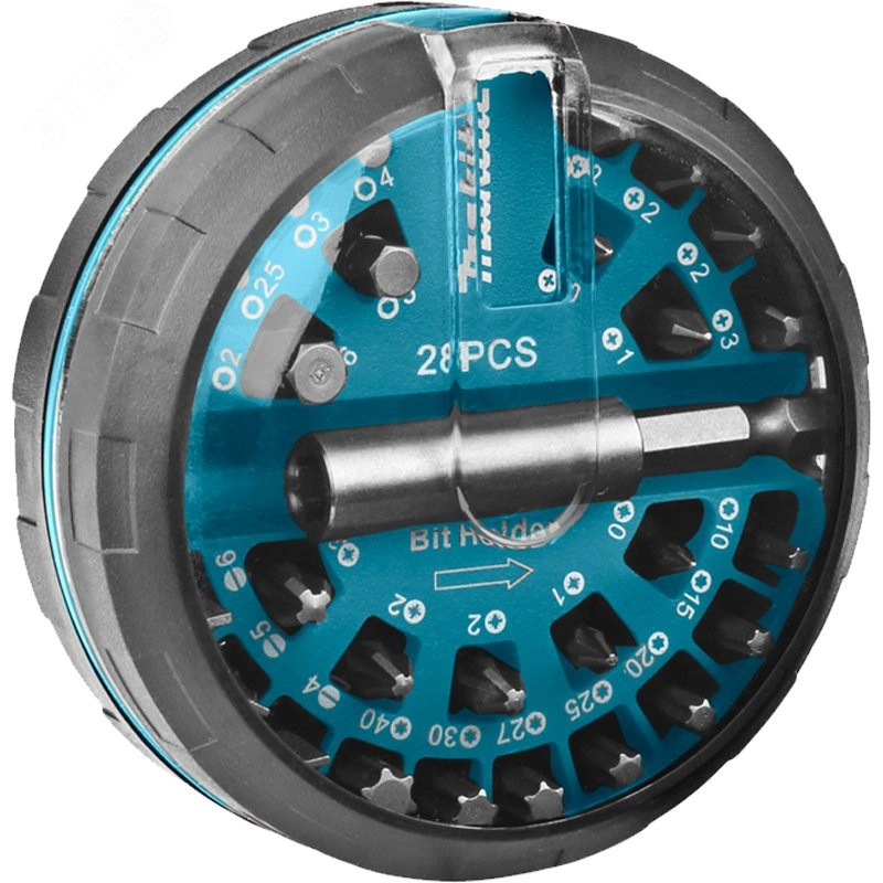 Набор бит Makita B-28911 для шуруповерта. В наборе 27 бит. Биты изготовлены из высокопрочной стали. Торсионная зона обеспечивает упругость оснастки и предохраняет биту от поломки при больших нагрузках. Для удобства хранения в набор входит пластиковая коробка круглой формы с прозрачной крышкой.
