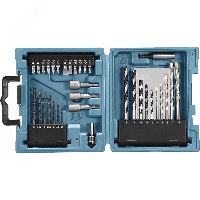 Набор сверл и бит Makita D-36980 – универсальный помощник для работы с различными материалами. Он состоит из 34 предметов, в который входят 17 сверл разного диаметра (работа по дереву, металлу, бетону), магнитный держатель, набор из 12 бит с различными типами наконечников, торцевые головки и зенкер. Изготовленные из высококачественной стали, все инструменты гарантируют высокий уровень надежности и устойчивость к износу даже при интенсивных нагрузках. Для удобного хранения и транспортировки набор Makita D-36980 поставляется в пластиковом кейсе.
