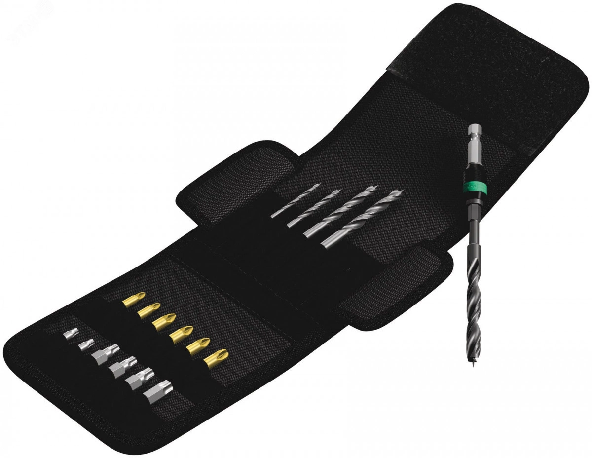 Набор спиральных свёрл-битов и битов. 18 предметов. Высококачественные спиральные свёрла-биты для точных и чистых отверстий в мягкой и твердой древесине, панелях. Из быстрорежущей стали (HSS). Оптимально подобранная упругость металла служит увеличению срока службы инструментов. Отсутствие радиального биения. Очень хорошая передача усилий с помощью шестигранного хвостовика. Универсальный держатель Rapidaptor обеспечивает моментальную смену битов без вспомогательного инструмента. Шестигранный хвостовик 1/4'', подходит для держателя по стандарту DIN ISO 1173-D 6,3.