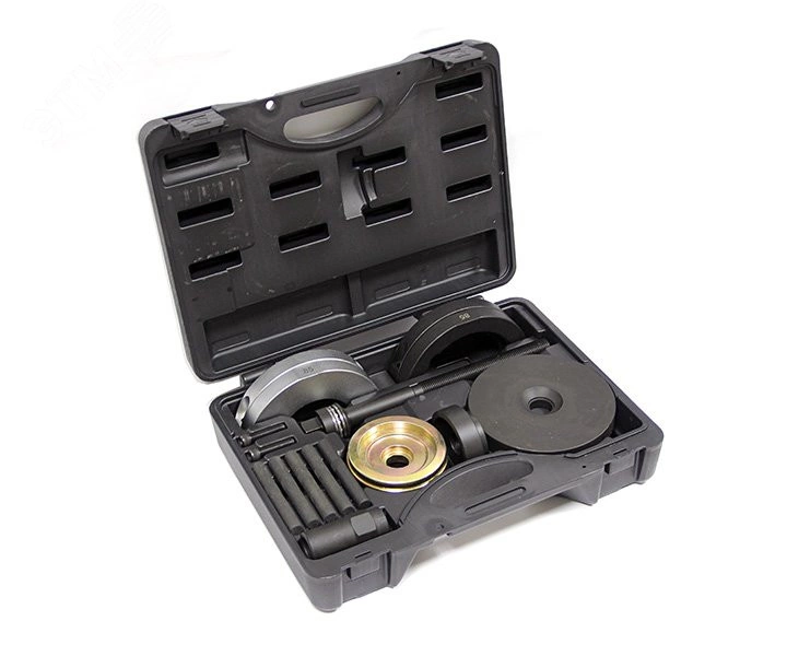 Набор оправок для монтажа и демонтажа ступичных подшипников кейс 16 предметов (100-30016C). Инструмент предназначен для таких работ как - монтаж и демонтаж ступичных подшипников автомобилей Volkswagen. Модели - фольксваген (Volkswagen) T5 / VW Touareg / Multivan. Применяется на автосервисах, СТО, в гаражах.