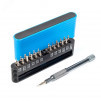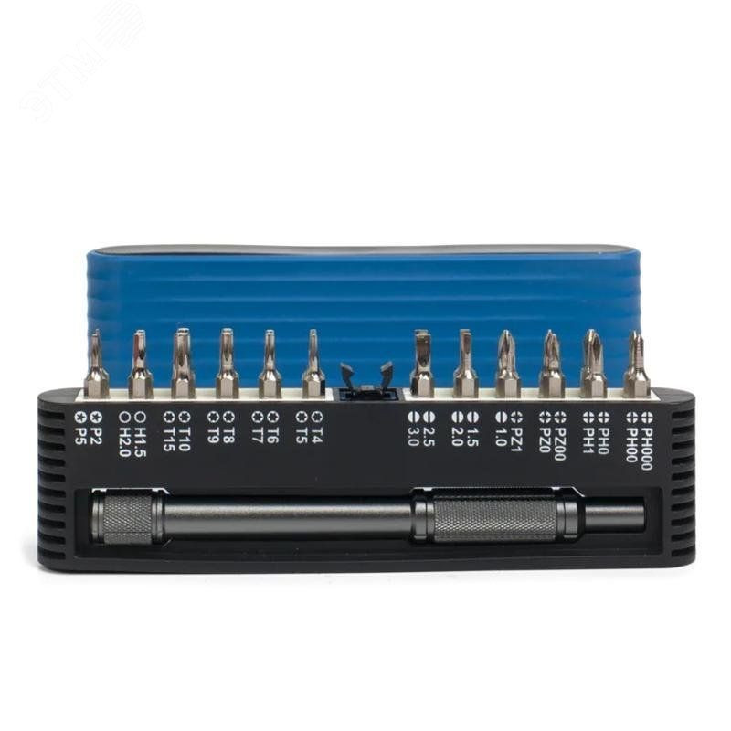 Состав набора - биты шлиц - 1.0, 1.5, 2.0, 2.5, 3.0 мм, биты PH - PH000, PH00, PH0, PH1 биты PZ - PZ00, PZ0, PZ1 биты TORX - T4, T5, T6, T7, T8, T9, T10, T15 биты шестигранные - H1.5, H2.0– биты 'звездочка' - P2, P5, отвертка пластиковый пенал. биты шлиц - 1.0, 1.5, 2.0, 2.5, 3.0 мм биты PH - PH000, PH00, PH0, PH1. биты PZ - PZ00, PZ0, PZ1. биты TORX - T4, T5, T6, T7, T8, T9, T10, T15. биты шестигранные - H1.5, H2.0– биты 'звездочка' - P2, P5, отвертка. пластиковый пенал, Размер бит - 4х28 мм. Материал бит - хром-ванадиевая сталь. Полностью металлическая отвертка с накаткой на рабочей части и вращающимся хвостовиком. Маркировка типоразмеров бит на внутренней части пенала. Пружинная защелка крышки обеспечивает надежную сохранность и легкий доступ к содержимому набора. Упаковка - пластиковый пенал. Вес - 150 г