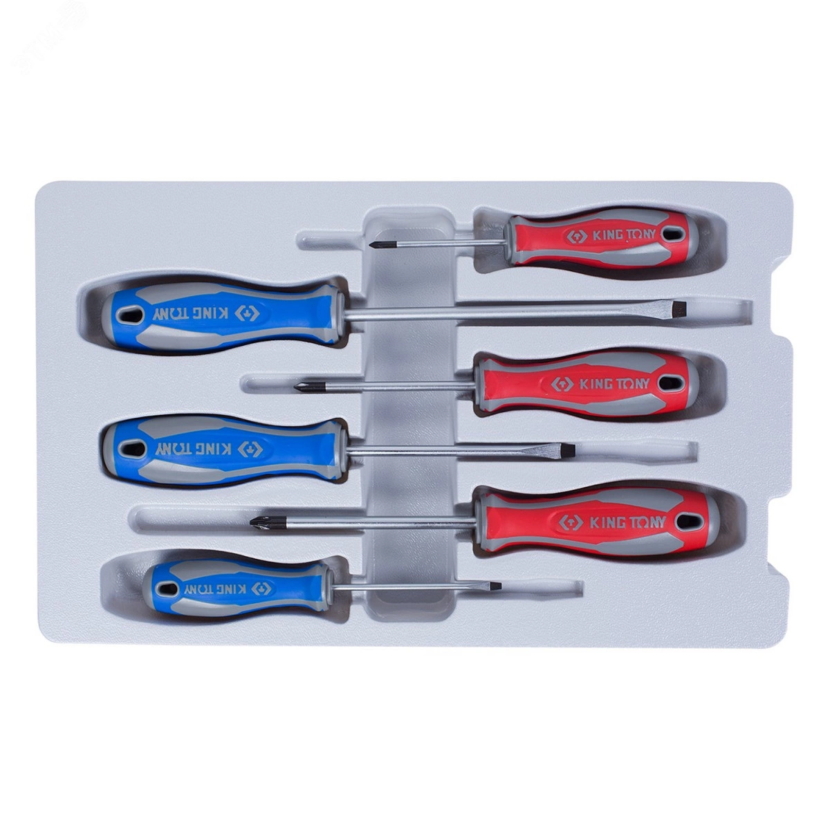 Набор отверток содержит комплект инструментов для повседневного использования. Рукоятки имеют эргономичную форму для надежного захвата и комфортной работы с инструментом.