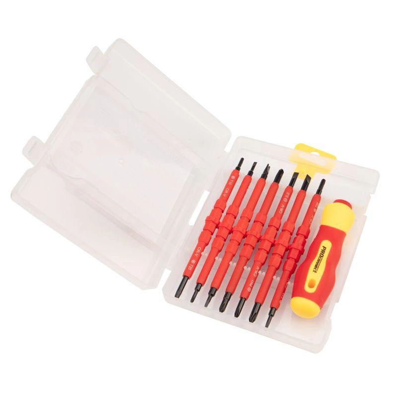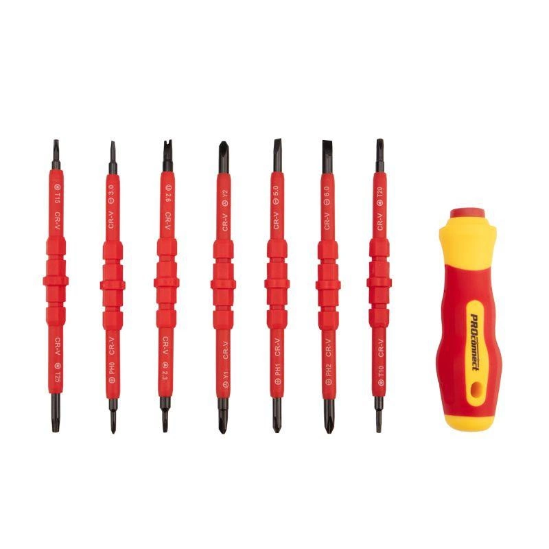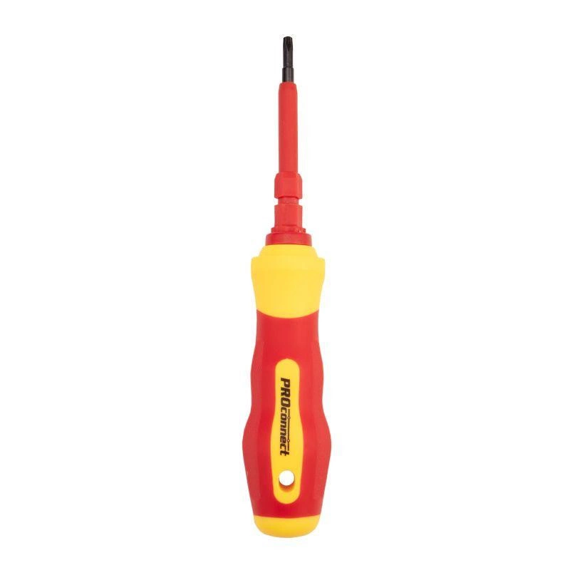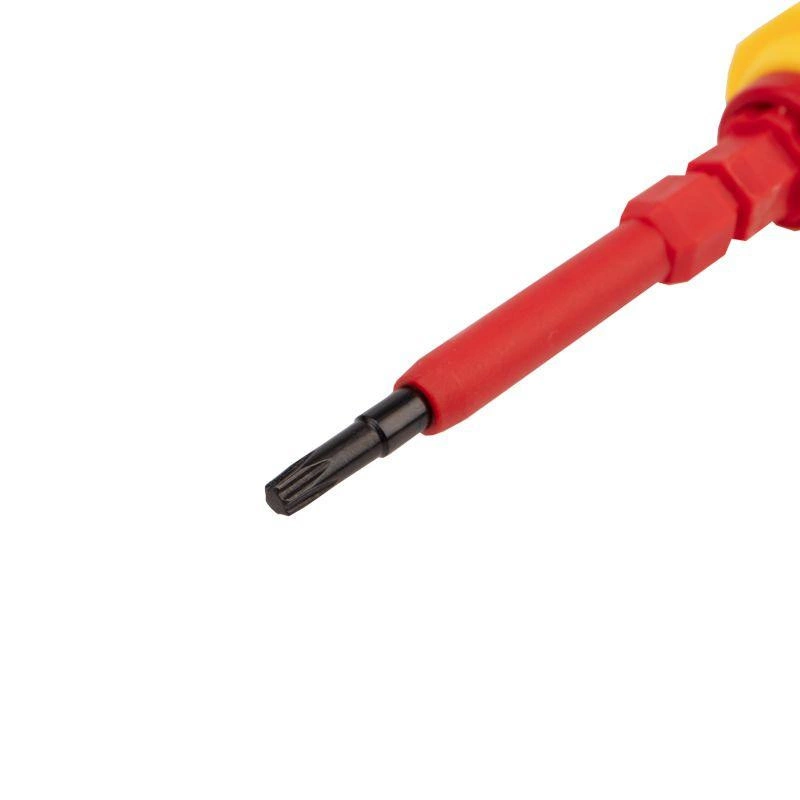 Двухсторонние стержни отвертки из высококачественной хромованадиевой стали с оксидированным намагниченным наконечником, покрыты специальным изоляционным материалом.