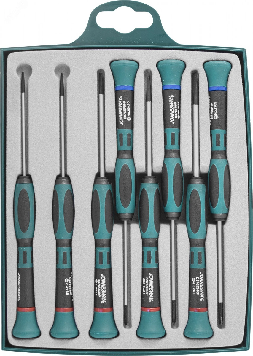 Набор отверток для точной механики Jonnesway D3765P08S шлиц прямой, крест, 65 мм, 8 пр. 48815 содержит 8 инструментов с крестовым и прямым шлицевым профилем. Отвертки имеют конструкцию, разработанную специально для работы с электроникой. Помещены в кейс, имеющий небольшие габариты - 220х170х30 мм. Набор отверток для точной механики Jonnesway шлиц прямой, крест, 65 мм, 8 пр. 48815 поставляется в футляре из пластика, который снабжен ручкой для переноса и защелками для безопасного хранения. Отвертки оснащены поворотными плоскими затыльниками, в которые удобно упираться ладонью, при проворачивании рукоятки инструмента.