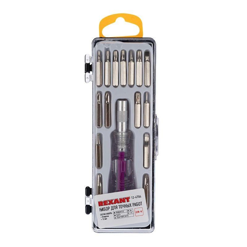 Набор отверток для точных работ арт.12-4704 REXANT 16 предметов, предназначена для выполнения прецизионных работ в электронике и электромеханике.