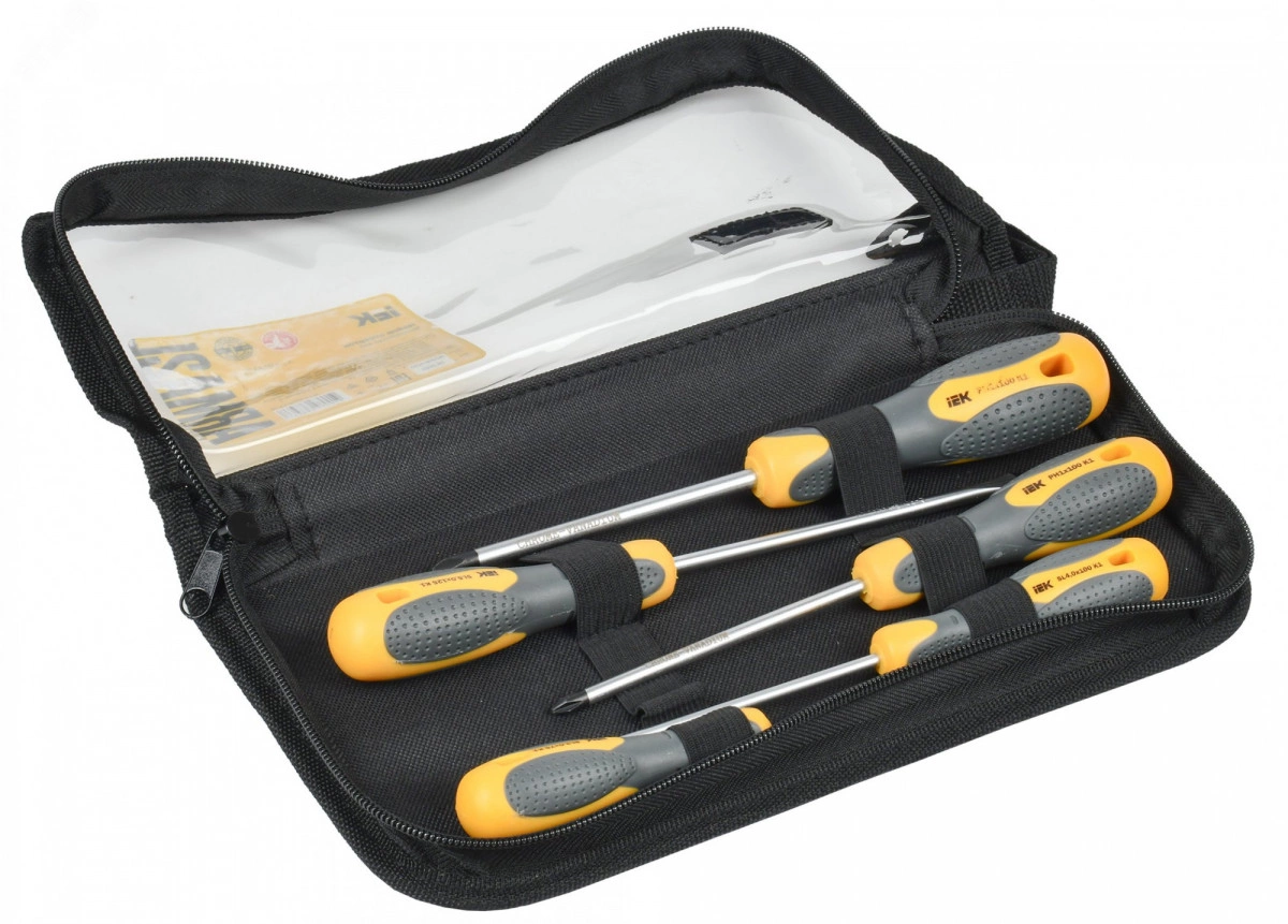 Набор отверток серии К1 (Master) включает в себя - крестообразные отвертки PH1х100, PH2х100, шлицевые - SL3,0х75, SL4,0х100, SL5,0х125. Рукоятка из 2-х-слойной термопластичной резины PP+TPR обеспечивает удобство удержания в руках и лучшую передачу усилия.