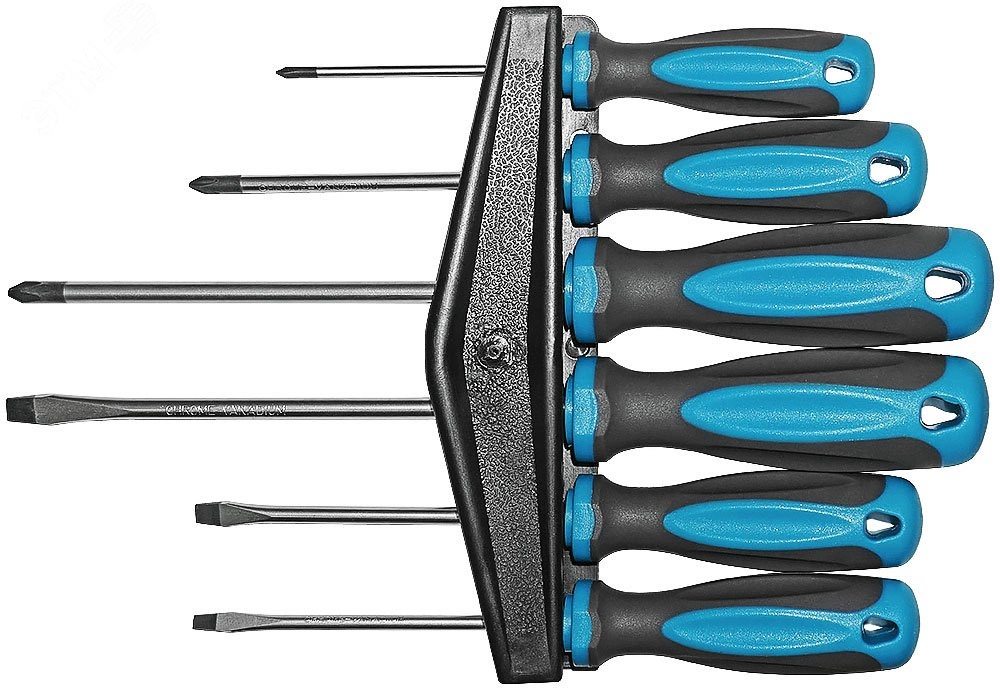 Набор отверток ''Техник'', на держателе, CrV сталь, прорезиненные ручки, 6 шт., PH0,1,2 + SL4,5,7