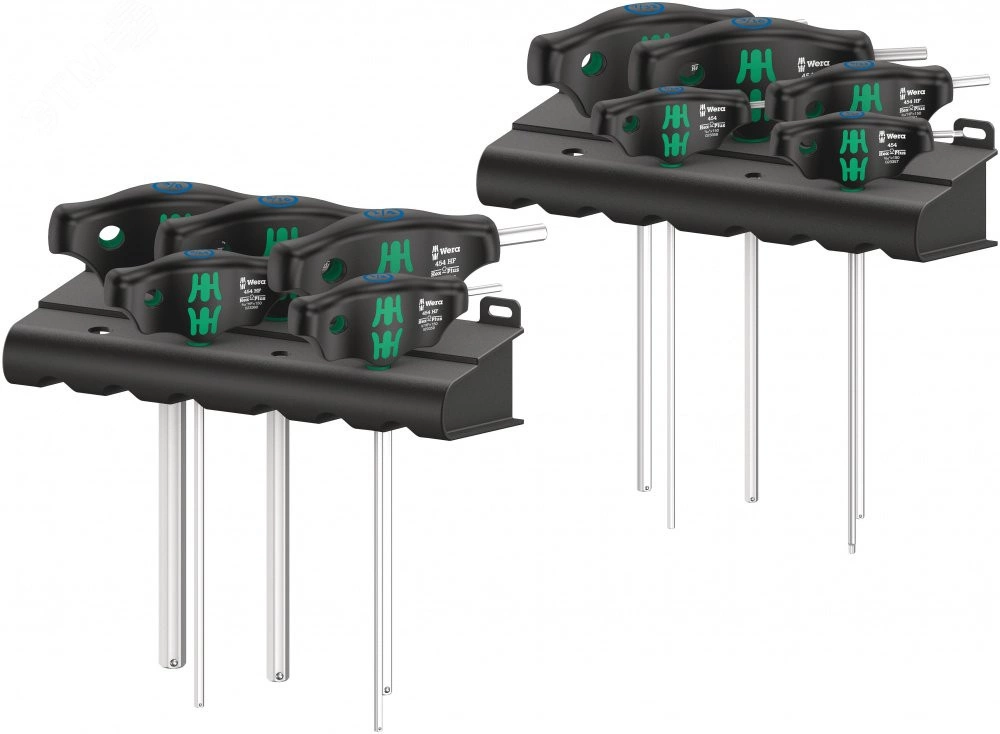 Набор отвёрток с Т-образной рукояткой 454/10 HF Set Imperial 1 Hex-Plus с функцией фиксации крепежа 3/32 - 3/8 10 предметов комплектация: 2x 454 Imperial Шестигранная отвёртка Hex-Plus с поперечной ручкой дюймовая: 3/32x150 7/64x150 8x 454 HF Ше