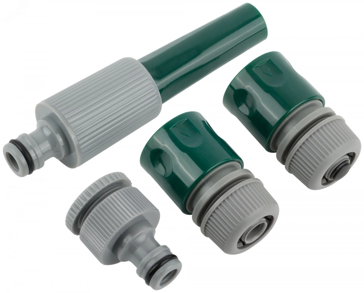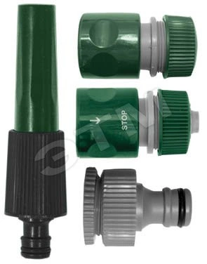 Набор поливочный 4 шт. (насадка для полива, соединитель, соединитель с автостопом, адаптер внешний). Материал - ABS пластик.