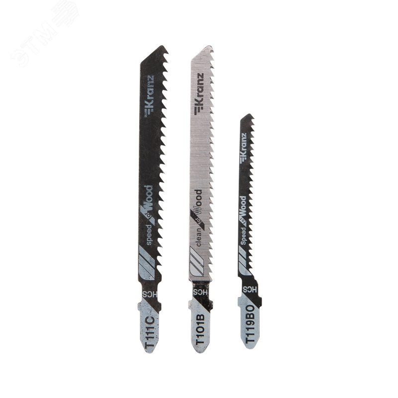 Набор полотен для электролобзика KRANZ с улучшенной заточкой зубьев предназначен для работ по дереву, металлу и оргстеклу. Полотно отлично подходит для всех марок электролобзиков с креплением для Т-образного хвостовика и надежно фиксируется в патроне. Выполнено из высокоуглеродистой стали. Улучшенная закалка токами высокой частоты увеличивает твердость зубьев и обеспечивает высокий ресурс.Тип распила чистый/быстрый/фигурный грубый. Толщина материала для распила 4-30/5-60/4-30 мм.