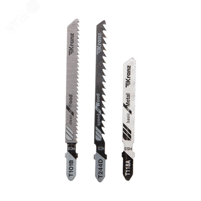 Набор полотен для электролобзика KRANZ с улучшенной заточкой зубьев предназначен для работ по дереву и металлу. Полотно отлично подходит для всех марок электролобзиков с креплением для Т-образного хвостовика и надежно фиксируется в патроне. Выполнено из высокоуглеродистой стали. Улучшенная закалка токами высокой частоты увеличивает твердость зубьев и обеспечивает высокий ресурс. Тип распила - чистый/сталь/быстрый. Толщина материала для распила 4-30/1,5-3/5-50 мм.