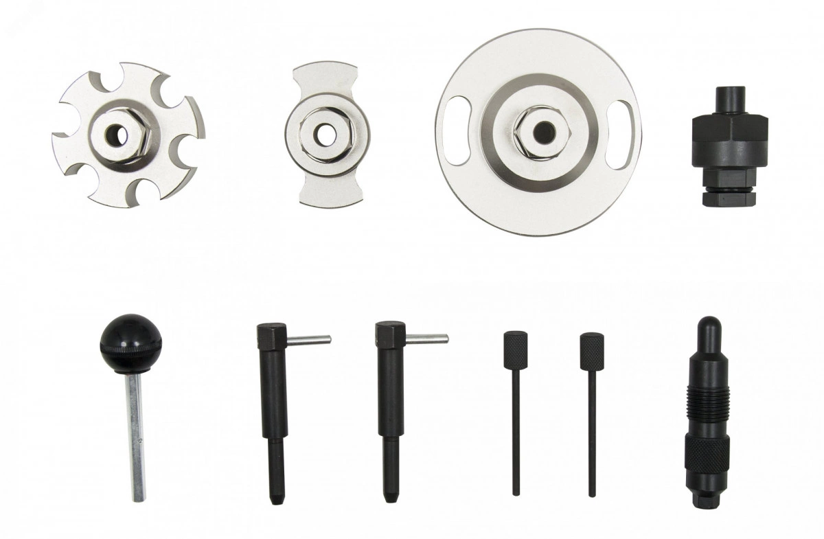 Набор приспособлений применяется для установки и регулировки фаз ГРМ дизельных двигателей объемом 2.7 л и 3.0 л, устанавливаемых на современные автомобили группы VAG, VW Touareg и Audi A8 с двигателем 4.0 TDi ASE.