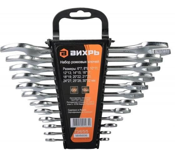 Набор рожковых ключей 6-32 (уп.12шт) Вихрь 73/6/5/5