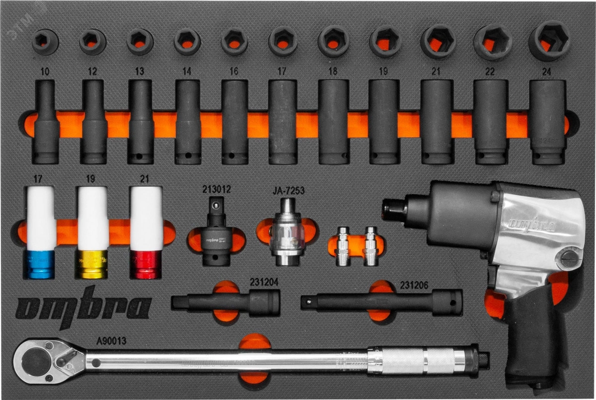 Набор с гайковертом, динамометрическим ключом и ударными головками в EVA ложементе 560х375 мм, 33 предмета