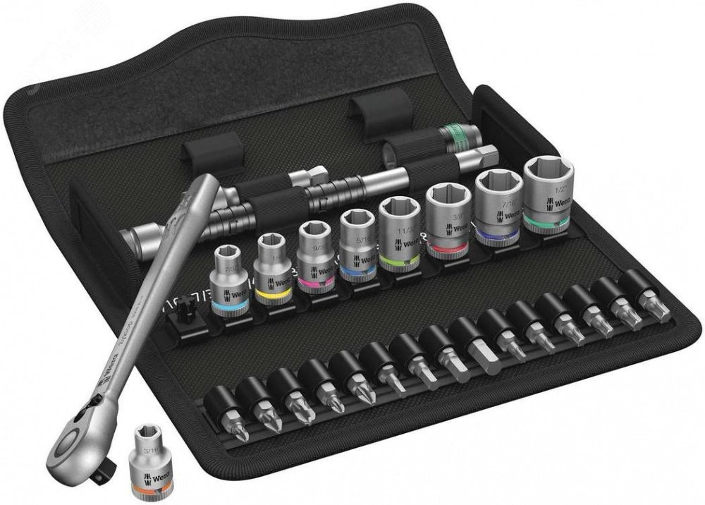 Невероятно компактное размещение большого числа инструментов в небольшом объеме. Абсолютно новое восприятие набора с трещоткой благодаря оригинальному мягкому футляру, обладающему высокой прочностью и долговечностью. Футляр с возможностью вертикального размещения для лучшего обзора инструментов на полке в мастерской. Матерчатая фактура футляра служит для дополнительной защиты рабочих поверхностей. Малый вес и объем - для повышения мобильности. С индикаторами инструментов ''Take it easy'' - цветовая маркировка размера.