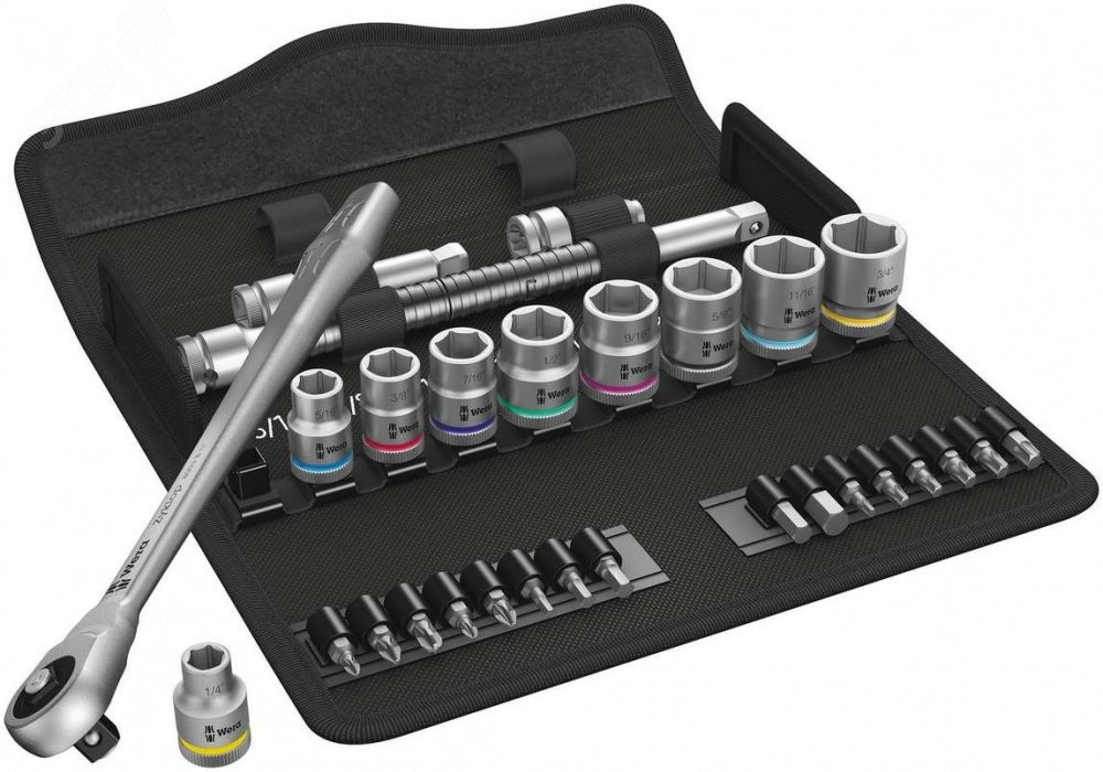 Невероятно компактное размещение большого числа инструментов в небольшом объеме. Абсолютно новое восприятие набора с трещоткой благодаря оригинальному мягкому футляру, обладающему высокой прочностью и долговечностью. Футляр с возможностью вертикального размещения для лучшего обзора инструментов на полке в мастерской. Матерчатая фактура футляра служит для дополнительной защиты рабочих поверхностей. Малый вес и объем - для повышения мобильности. С индикаторами инструментов ''Take it easy'' - цветовая маркировка размера.