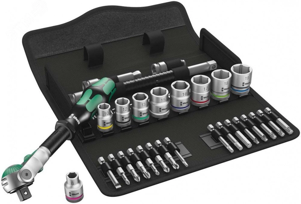Невероятно компактное размещение большого числа инструментов в небольшом объеме. Абсолютно новое восприятие набора с трещоткой благодаря оригинальному мягкому футляру, обладающему высокой прочностью и долговечностью. Футляр с возможностью вертикального размещения для лучшего обзора инструментов на полке в мастерской. Матерчатая фактура футляра служит для дополнительной защиты рабочих поверхностей. Малый вес и объем - для повышения мобильности. С индикаторами инструментов ''Take it easy'' - цветовая маркировка размера.