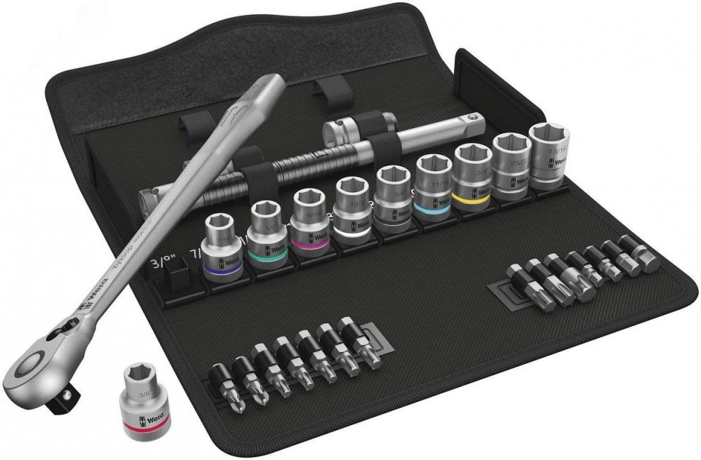 Невероятно компактное размещение большого числа инструментов в небольшом объеме. Абсолютно новое восприятие набора с трещоткой благодаря оригинальному мягкому футляру, обладающему высокой прочностью и долговечностью. Футляр с возможностью вертикального размещения для лучшего обзора инструментов на полке в мастерской. Матерчатая фактура футляра служит для дополнительной защиты рабочих поверхностей. Малый вес и объем - для повышения мобильности. С индикаторами инструментов ''Take it easy'' - цветовая маркировка размера.
