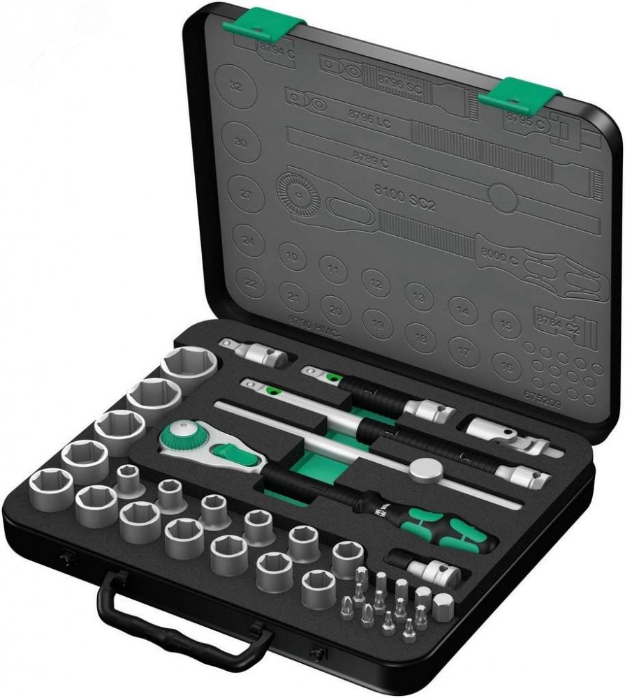 Набор с трещоткой 8100 SA 7 Zyklop Metal Push сдвижной квадрат DR 1/4 28 предметов
