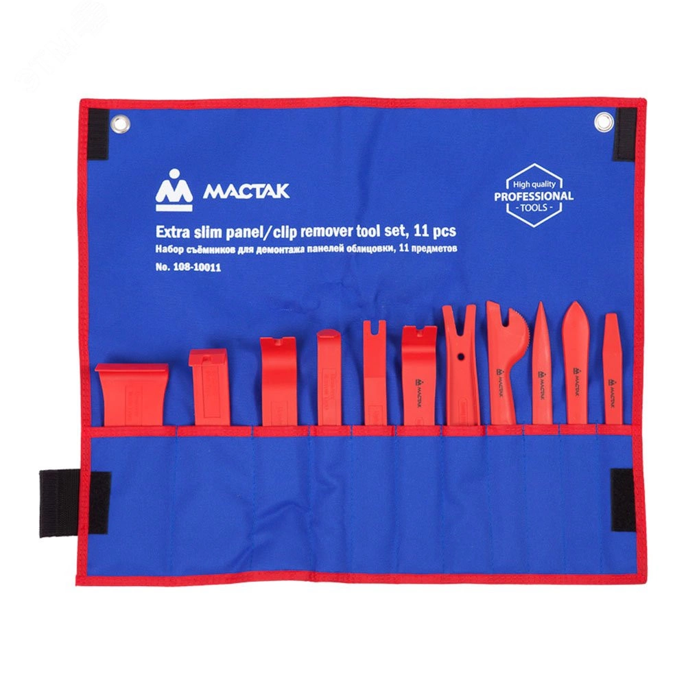 Набор съемников ''лопатки'' для панелей облицовки 11 предметов (108-10011). Предназначен для демонтажа клипс, фитингов, замков и прочих крепежных пластиковых элементов.