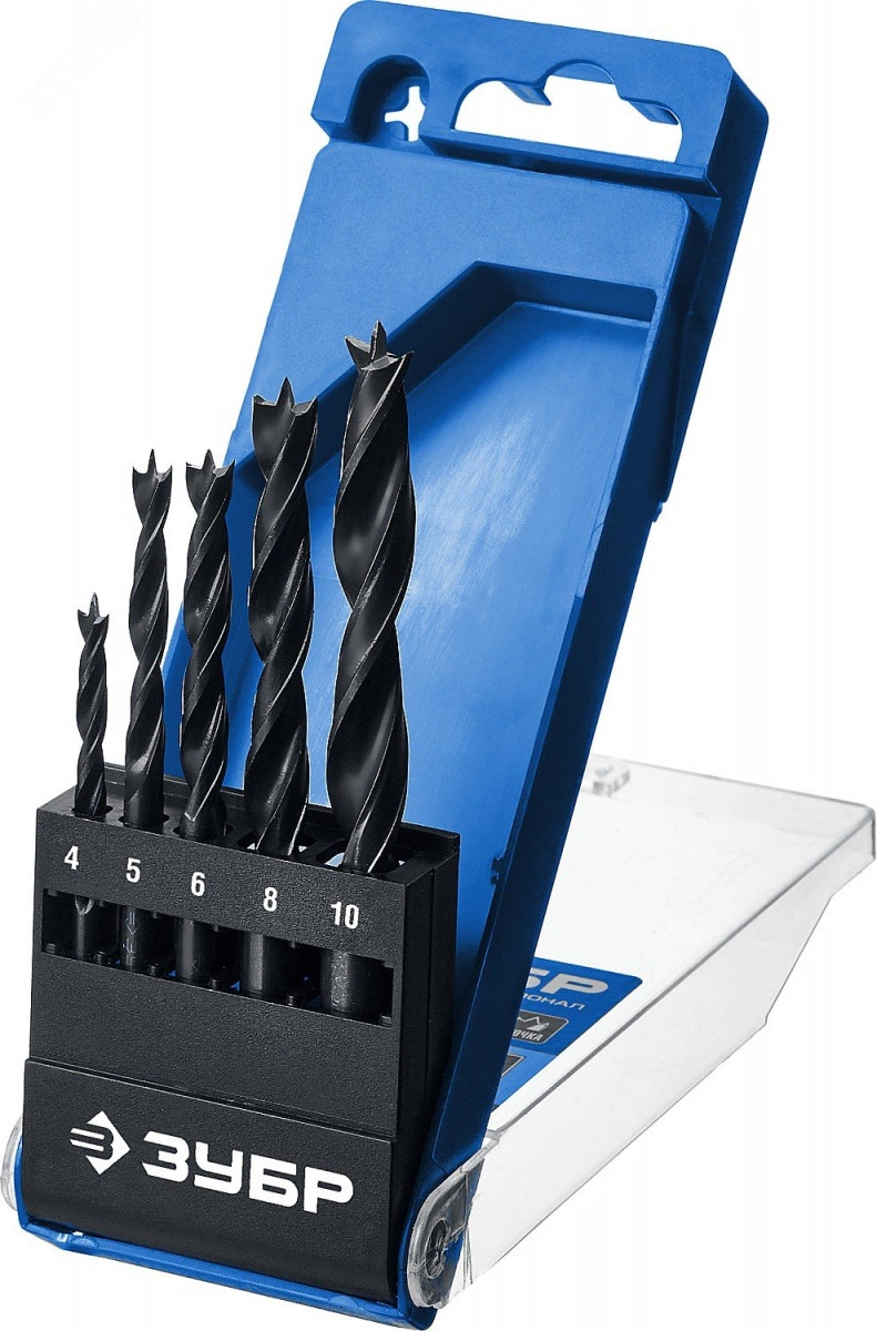 Набор спиральных сверл по дереву, М-образная заточка 5 шт (4-5-6-8-10 мм)