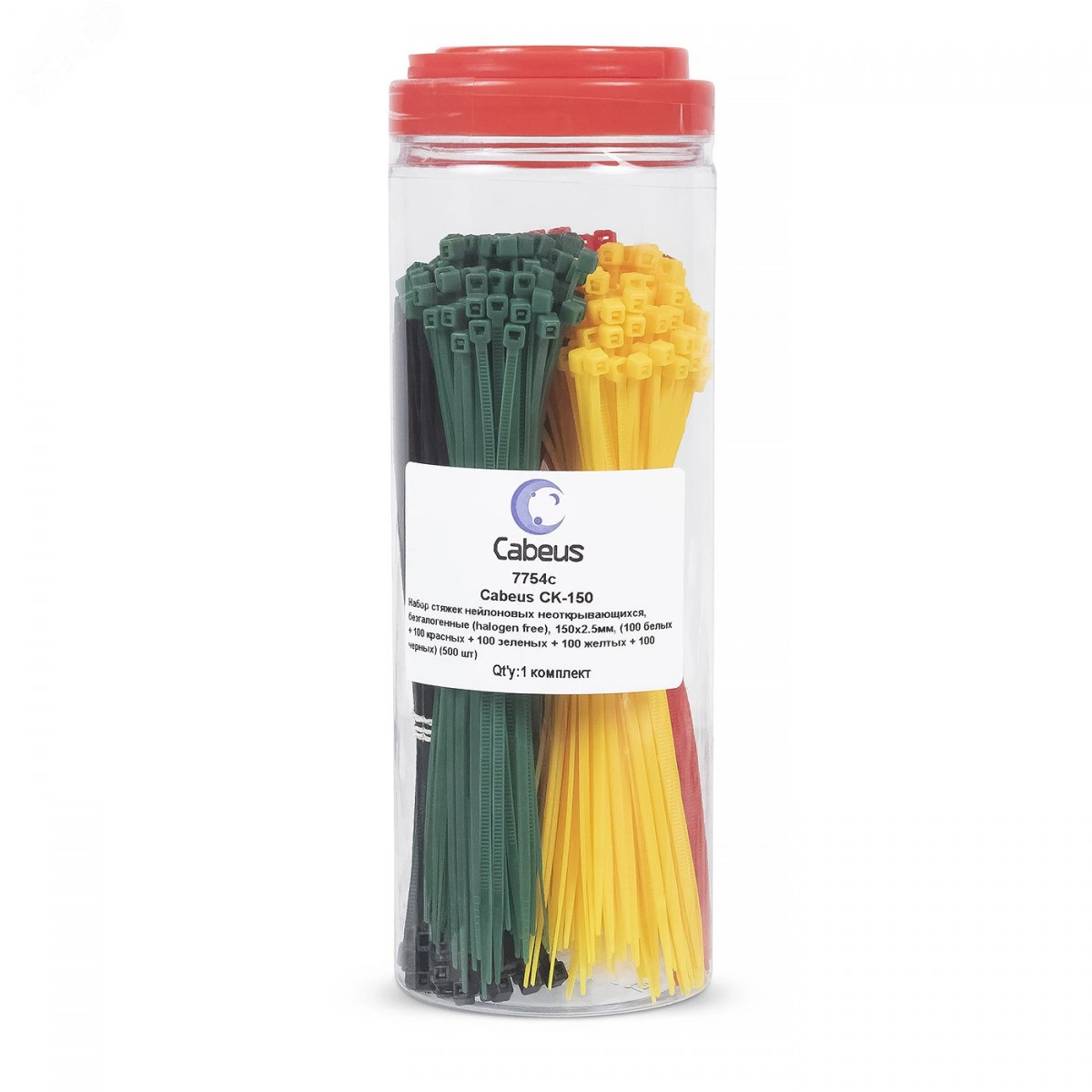 Набор стяжек нейлоновых неоткрывающихся, безгалогенные (halogen free), 100x2.5мм, (400 белых + 100 красных + 100 синих + 100 зеленых + 100 желтых + 200 черных) (1000 шт)