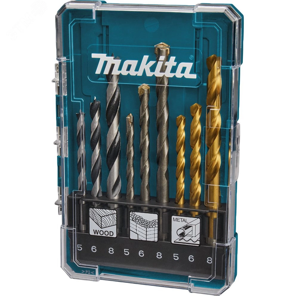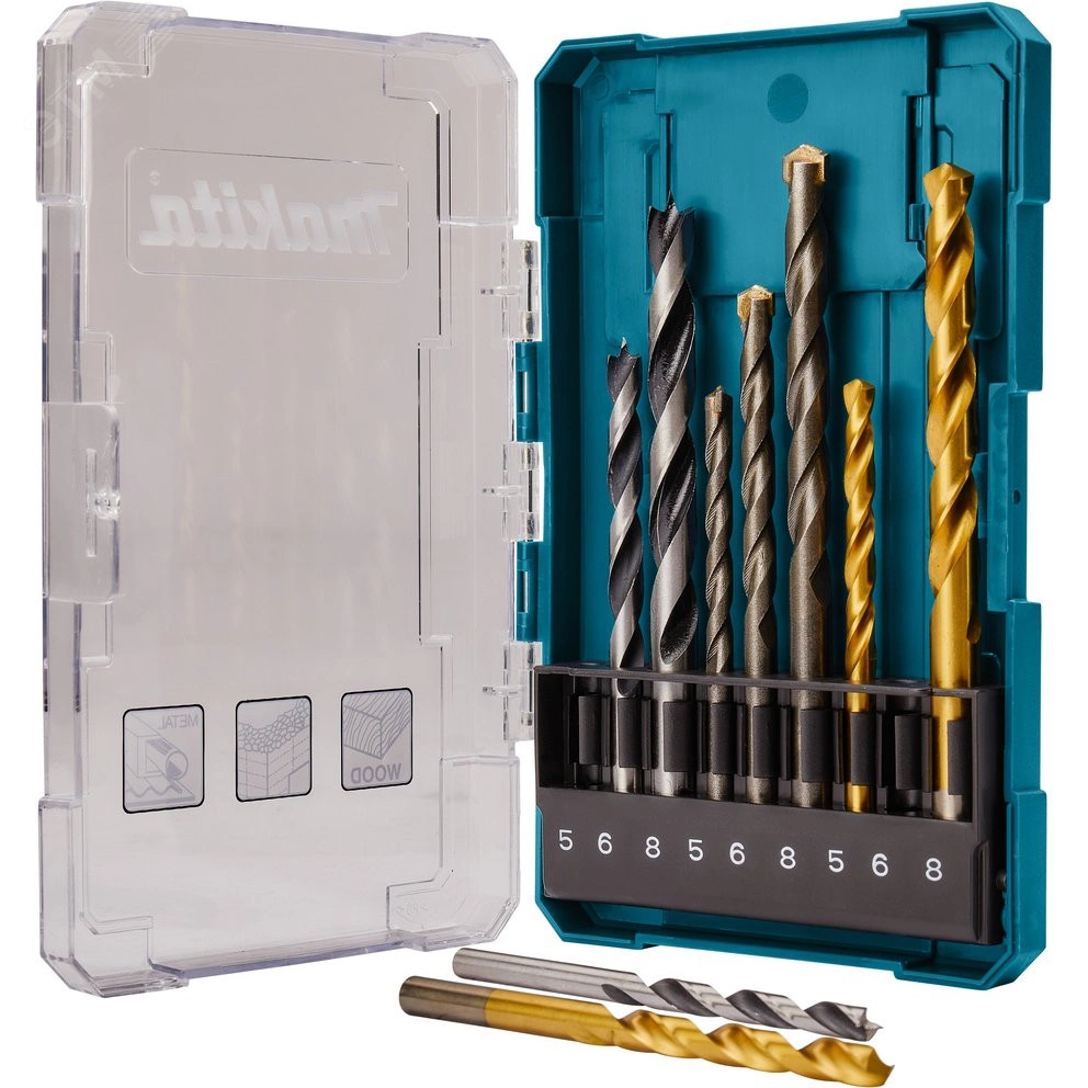Комбинированный набор свёрл Makita D-71962 (аналог- D-08660) состоит из 9-ти различных свёрл для эффективной работы по дереву, металлу, камню или бетону, отлично сочетается с дрелями, шуруповертами и другими электроинструментами Makita. Сверла из набора цилиндрические спиральные трех типоразмеров для каждого вида материала – 5, 6 и 8 мм соответственно.