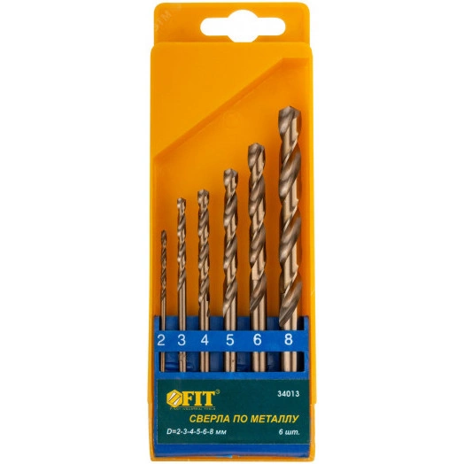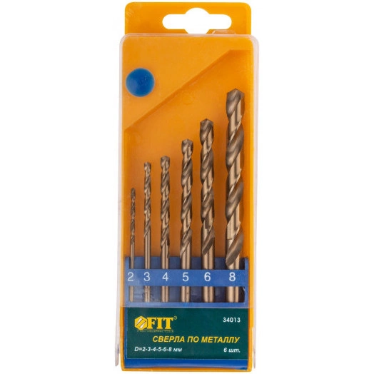Набор сверл HSS по металлу с добавкой кобальта 5%, 6 шт (2-3-4-5-6-8 мм)