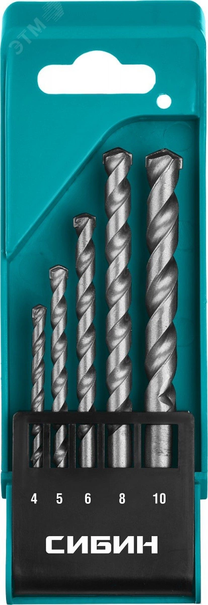 Набор сверл по бетону, 5 шт: d 4-5-6-8-10 мм